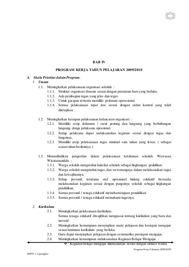 Program kerja pengertian tujuan manfaat jenis tahapan program kerja menjadi komponen penting bagi organisasi dalam mencapai sebuah tujuan. Berikut ini kutipan teksketerangan dari isi berkas contoh program gerakan literasi sekolah. Program kerja smp negeri 1 cipongkor tahun pelajaran 20092010 merupakan program kerja tahunan yang berisikan rencana kegiatan dan usaha usaha sekolah yang akan dan harus dilaksanakan selama satu tahun pelajaran dalam rangka mensukseskan program wajib belajar pendidikan dasar 9 sembilan tahun dan tujuan pendidikan nasional pada umumnya. Semoga file program kerja kepala sekolah sdsmpsmasmk yang telah saya bagikan tersebut melalui postingan ini dapat benar benar bermanfaat bagi anda yang membutuhkannya dan apabila ada hal hal yang ingin anda sampaikan tentang postingan yang saya buat ini kiranya dapat memberikan masukan atau tanggapan yang positif melalui kolom komentar yang tersedia dan akhir kata apabila anda masih. Kumpulan contoh program kerja kepala sekolah untuk semua jenjang pendidikan. Pendahuluan literasi tidak sekedar membaca dan menulis namun mencakup keterampilan berpikir menggunakan sumber sumber pengetahuan dalam bentuk cetak visual digital dan auditori.