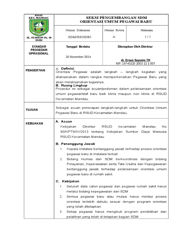 Contoh program orientasi karyawan baru. Banyak pemberi kerja mengharuskan para karyawan baru menandatangani daftar periksa tersebut untuk menyatakan bahwa mereka telah diberitahu mengenai aturan dan prosedur yang bersangkutan. Sebuah daftar periksa orientasi dapat digunakan oleh staf departemen sdm supervisor karyawan baru atau keduanya untuk menyediakan informasi yang perlu diketahui oleh karyawan baru. Sedangkan program pelatihan dapat mendorong karyawan mengasah kemampuan yang dimiliki dalam mencapai tujuan dan strategi perusahaan. Kualitas sumber daya manusia selain dapat dinilai dari kualifikasi yang dipenuhi pada tahap rekrutmen juga. Program orientasi karyawan pengertian dari program orientasi karyawan baru adalah program yang memiliki suatu tujuan sebagai proses pengenalan karyawan baru tentang lingkunganbudayasosialisasi seluruh karyawan yang ada pada perusaan tersebut dan apapun yang memiliki hubungan dengan perusahaan. Menyusun program orientasi karyawan baru tidaklah sulit.