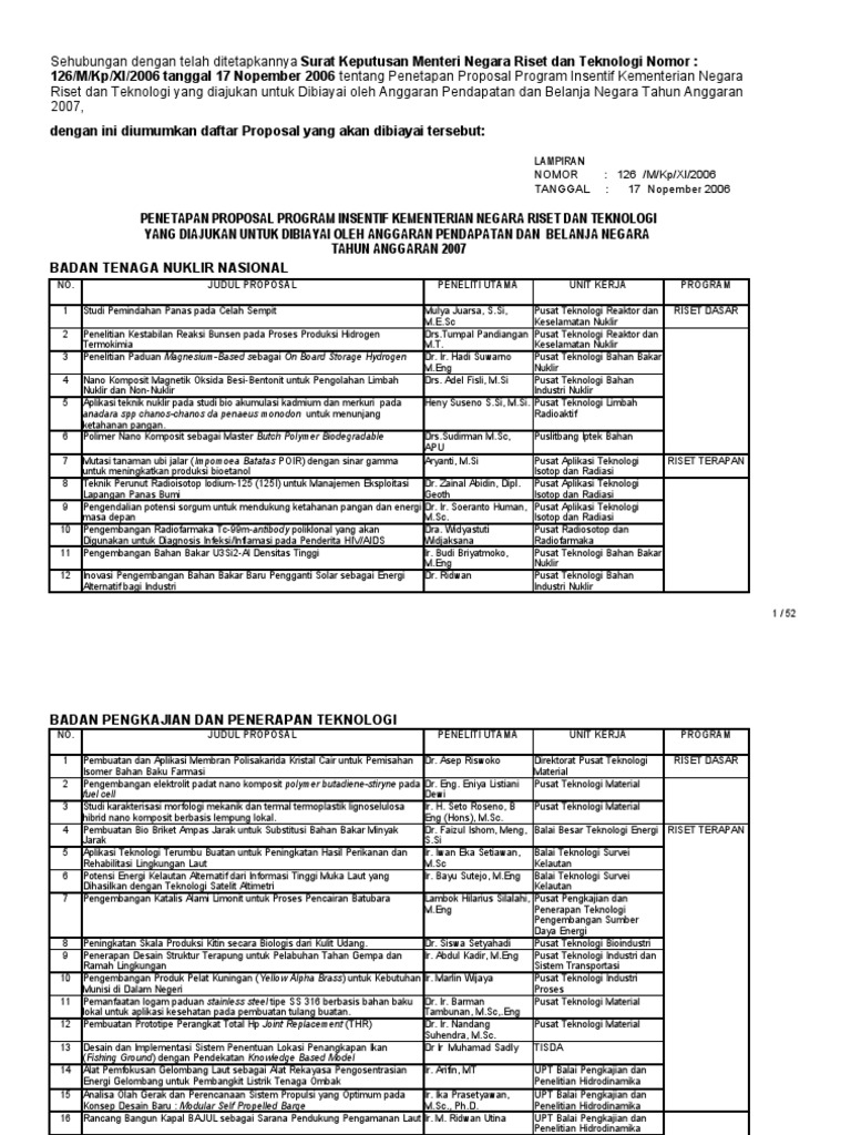 Institut pertanian bogor sesuai hasil evaluasi proposal lnsentif riset sinasdengan ini kami beritahukan bahwa proposal yang saudara ajukan didanai untuk tahun anggaran 2016 daftar terlampir. Program insinas terbuka bagi peneliti yang berasal dari lembaga litbang baik negeri maupun swasta. Kode proposal judul pola pendanaan tahun riset ke tahun lama riset tahun bantuan pendanaan r p. Untuk memperkokoh jati diri bangsa. Contoh 1 bagan yang tertera pada proposal riset dasar. Sehubungan dengan hal tersebut kami mengucapkan selamat kepada para peneliti yang proposalnya lulus evaluasi.