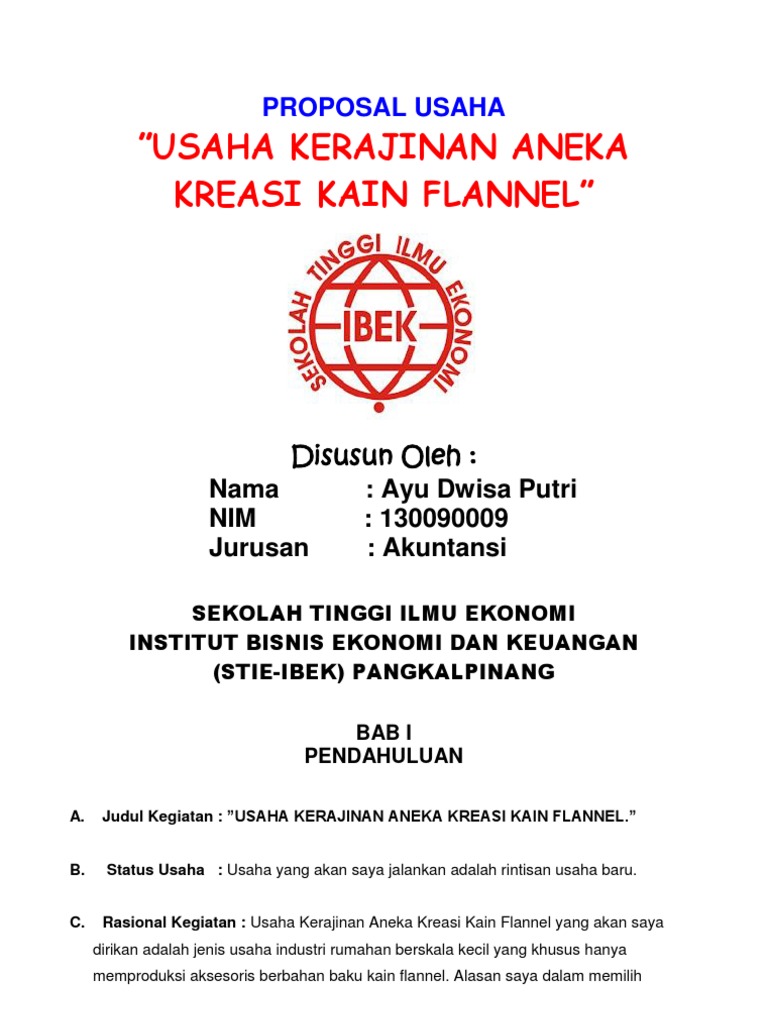 Contoh proposal kewirausahaan kerajinan tangan. Academiaedu is a platform for academics to share research papers. Dimana didalam topic tersebut ada beberapa hal yang bisa kita pelajari khususnya untuk menambah kreatifitas bagi siswa siswi maupun masyarakat. Disekitar kita barang barang bekas seperti botol botol bekas sudah tidak asing lagi bagi kita. Contoh proposal pkm kewirausahaan berbicara mengenai kewirausahaan saat ini memang ada banyak orang yang bergelur di dalamnya tidak terkecuali para mahasiswa yang memiliki mimpi besar memiliki suatu usaha yang nantinya bisa menghidupi dirinya dan keluarganyaadapun pilihan usaha yang bisa dijalani saat ini ada banyak sekali dan rata rata dari masing masing usaha juga memiliki prospek. Berikut ini adalah contoh proposal usaha yang baik dan benar. Proposal kewirausahaan usaha tempat pensil flanel 1.