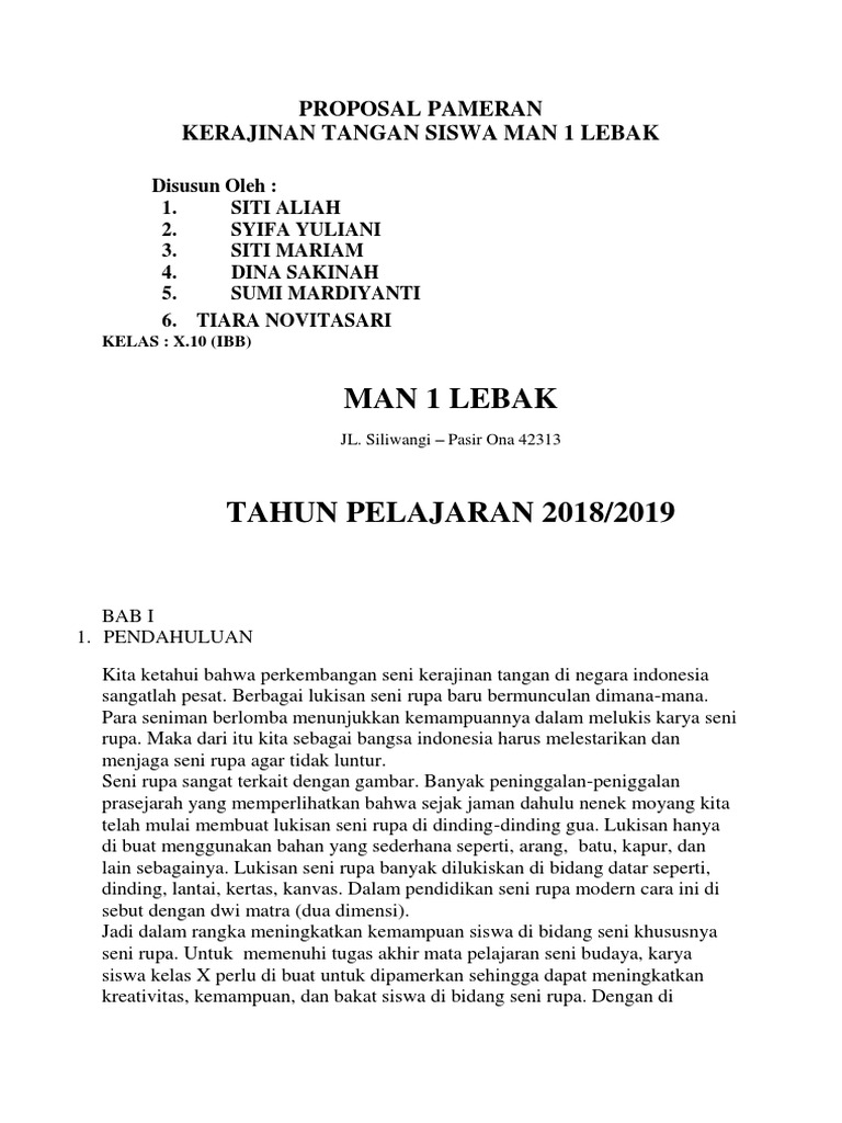 Contoh proposal kegiatan pameran seni rupa di sekolah proposal pameran seni rupa sma negeri 1 cluring jl. Hal yang lebih membanggakan lagi bahwa hal ini membangkitkan kecintaan produk dalam negeri khususnya produk batik yang sementara waktu lalu telah dilupakan oleh anak anak muda khususnya.