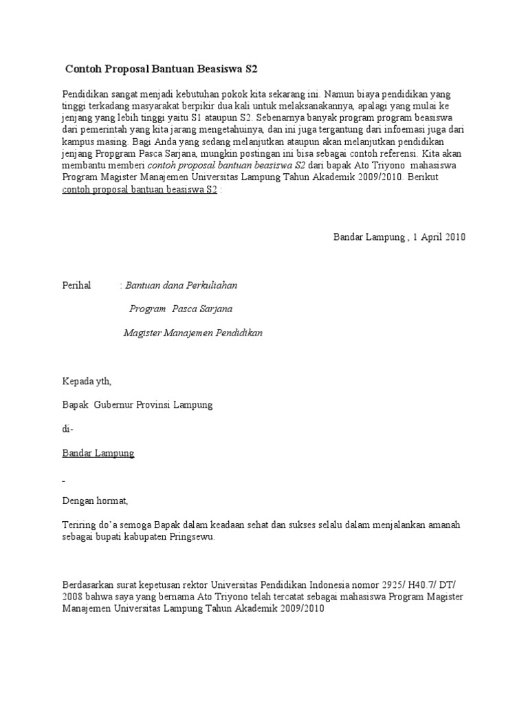 Contoh proposal pengajuan beasiswa. Berdasarkan program beasiswa unggulan kemdiknas tentang pemberian bantuan beasiswa kepada mahasiswa program strata 1 s1. Contoh proposal permohonan bantuan beasiswa proposal. Proposal ini saya buat bertujuan untuk mendapatkan beasiswa pendidikan dari pemerintah daerah maupun swasta. Surat permohonan beasiswa pendidikan. Minggu 03 november 2013. Mushalla nurul agungkorong tanah lapangjorong bukit kilinagari koto baru.
