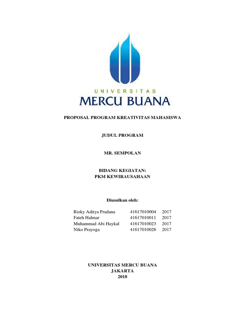 Komoditas usaha yang dihasilkan atapun diusulkan mahasiswa dapat berupa. Langit biru udhidewa putri qoriasiatul khotijah rizqi ridha jawara masqotul imam romadlani silla arbi arif 141710101053 141710101023 131710101099 110110101068 110710101258. Proposal program kreativitas mahasiswa judul program. Selain itu tujuan dibuatnya contoh proposal kewirausahaan juga terkadang dilakukan untuk mendapatkan sebuah perizinan sehingga kita mendapatkan legalisasi usaha dan bahkan tidak jarang pula dengan kita membuat proposal usaha mendapatkan bantuan tertentu dari pihak pemerintah pusat. Untuk membuat sebuah contoh proposal kewirausahaan yang. Unsur unsur yang harus ada dalam proposal kewirausahaan.