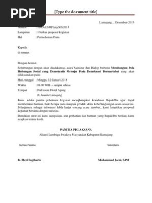 Pemanasan global atau global warming adalah suatu proses meningkatnya suhu rata rata atmosfer laut dan daratan bumi. Uang muka diserahkan bersama dengan penandatanganan kontrak kerjasama minimal 25 dari jenis sponsorship yang telah disepakati. Diposting oleh yunny handayani di 2305. Dalam perkembangan global saat ini sudah banyak fenomena fenomena yang terjadi begitupun dengan indonesia yang dimana semua permasalaha n n ya se makin kompleks terutama dalam hal teknologi. Proposal kegiatan event biasanya diserahkan kepada calon donatir untuk mendapatkan bantuan dana. Sistematika proposal kegiatan adalah sebagai berikut.