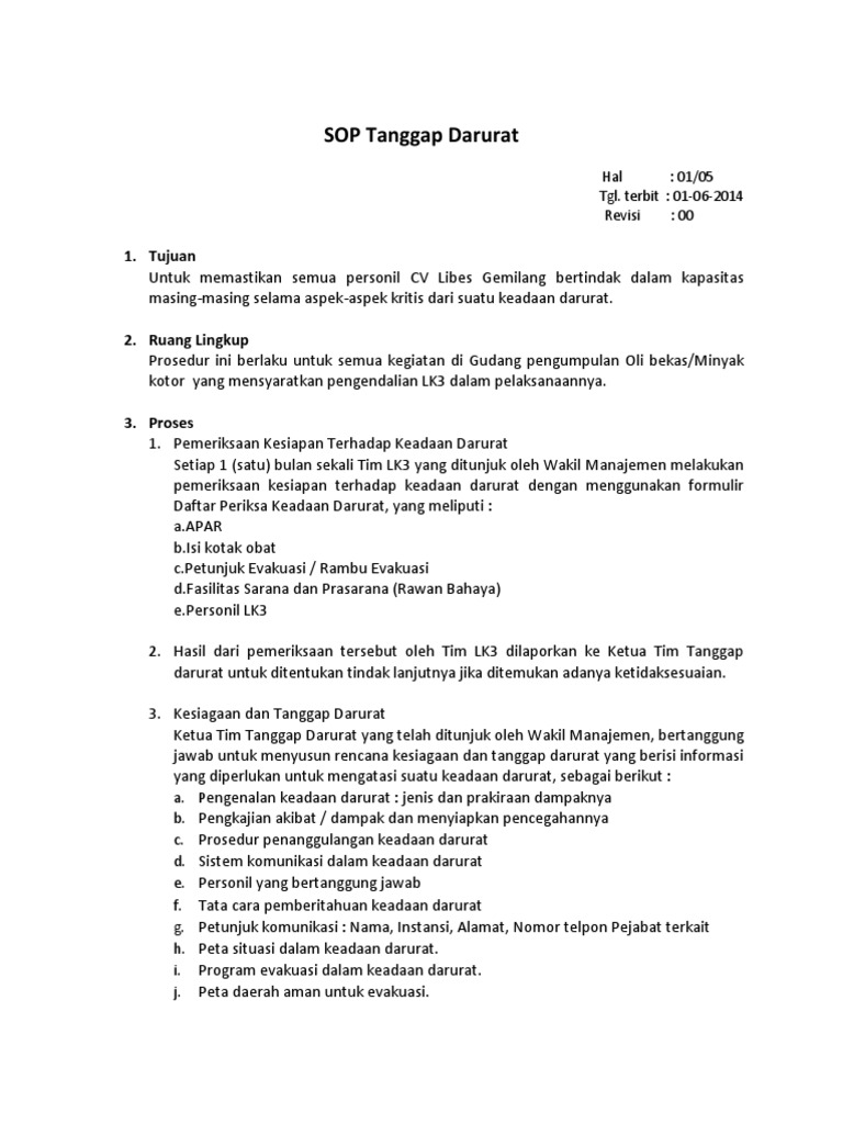 Contoh prosedur tanggap darurat kebakaran. Ketua tim tanggap darurat bertanggung jawab untuk menyusun prosedur kesiagaan dan tanggap darurat untuk keadaan gempa bumi. Definisi unit tanggap darurat ialah unit kerja yang dibentuk secara khusus untuk menanggulangi keadaaan darurat di tempat kerja. Perhatikan langkah langkah prosedur evakuasi keadaan darurat kebakaran yang akan diarahkan oleh safety department seperti berikut ini. 38 rencana tindak darurat kebakaran suatu rencana atau plan yang memuat prosedur yang mengatur siapa harus berbuat apa pada saat terjadi keadaan darurat dalam satu bangunan gedung dalam hal ini kebakaran dimana tiap bangunan akan berbeda bentuk rtdk nya sesuai dengan situasi dan kondisi masing masing. Menuju ruang posko taktis dan memimpin operasi pemadaman. 72 tugas dan tanggung jawab organisasi tanggap darurat.
