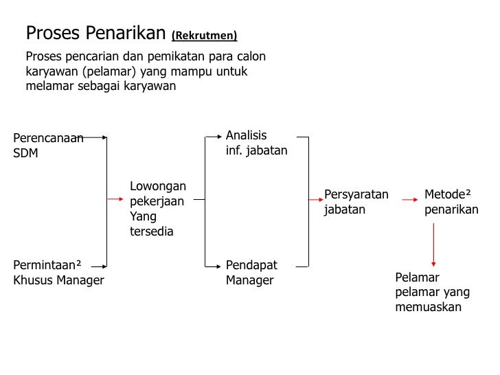 Adapun cara cara yang dilakukan dalam proses rekrutmen karyawan di perusahan berikut ulasannya. Prosedur sop hrd rekrutmen karyawan tujuan prosedur operasional standard ini disusun untuk memastikan terlaksananya proses yang adil dan bahwa calon karyawan terbaik yang terpilih untuk setiap lowongan yang tersedia. Pengertian seleksi dan proses seleksi penerimaan karyawan dalam manajemen sumber daya manusia seleksi atau selection adalah proses untuk memilih pelamar untuk dijadikan karyawan dan menempatkan mereka pada posisi yang dibutuhkan oleh organisasi. Penarikan rekrutmen karyawan merupakan suatu proses atau tindakan yang dilakukan oleh organisasi untuk mendapatkan tambahan karyawan melalui berbagai tahapan yang mencakup identifikasi dan efaluasi sumber sumber penarikan tenaga kerja menentukan kebutuhan tenaga kerja proses seleksi penempatan dan orientasi tenaga kerja. 9 tahapan proses perekrutan dan seleksi karyawan baru yang benar bagi banyak perusahaan dan organisasi besar proses seleksi dan rekrutmen karyawan baru merupakan sebuah pekerjaan yang sangat berat. Ada juga yang memperpendek dan mempersingkat proses seleksi dikarenakan waktu yang buru buru dimana perusahaan sudah butuh cepat untuk pengganti karyawan yang akan resign atau pensiun.