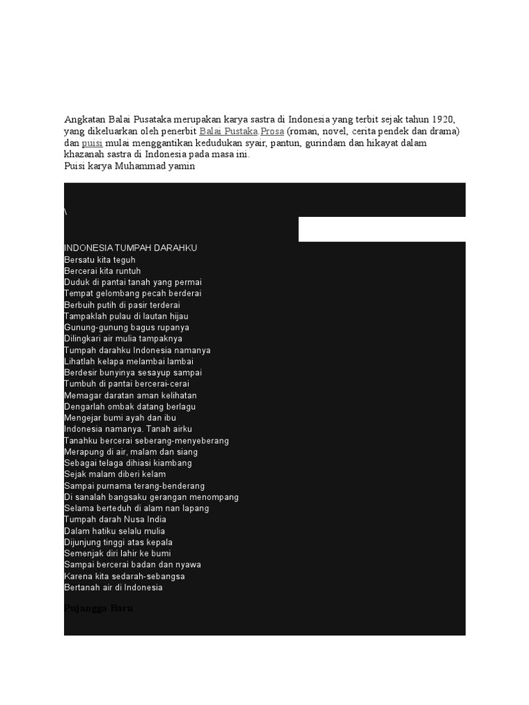 Februari 04 2013 kumpulan puisi puisi dari angkatan 20 balai pustaka 45 sama 50 buat tugas bio tadinya tapi gak jadi alias gagal. Puisi angkatan 45 a. Kepadatan puisi di masa angkatan 45 ini dipandang kurang memuaskan. Pada periode angkatan 45 ini berkembang jenis jenis sastra puisi cerpen novel dan drama. Mihardja dan masih banyak penulis lainnya. Beberapa sajak hasil terjemahan chairil anwar dalam chairil anwar pelopor angkatan 45.
