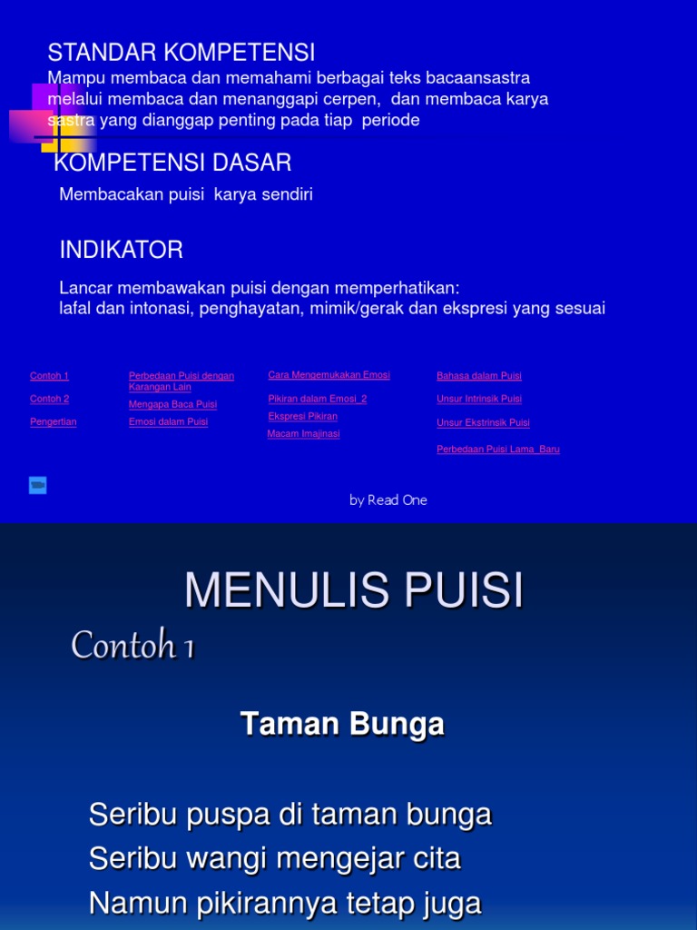 Contoh puisi karya sendiri. Cara mudah membacakan puisi karya sendiri dan contoh puisi karya sendiri kalian tentu pernah disuruh membuat puisi oleh ibu guru atau bapak guru bukan nah setelah puisi yang kalian buat itu jadi tinggal bagaimana cara membacakan puisi karya kalian itu kepada orang lain dengan baik dan bagus. Merdeka untuk bekerja bebas bergerak di negeri sendiri bebas berpendapat dan bebas menentukan nasib sendiri. Puisi bebas merupakan puisi yang tidak terikat pada aturan khusus yaitu jumlah baris tiap bait jumlah suku kata tiap baris sajak irama ritma dan pilihan kata. Puji syukur atas kehadirat tuhan yang mahaesa karena atas karunia dan rahmatnya lah kita masih diberikan kesempatan dan kesehatan sehingga makalah yang berjudulpembacaan puisi karya sendiri dari segi lafal intonasi penghayatan dan ekspresi yang sesuai dapat terselesaikan dengan sebaik baiknya. Beberapa di antara kalian mungkin akan sangat senang dan bersemangat membacakan puisi karya sendiri. Puisi merupakan seni dalam bentuk tulisan menggunakan bahasa sebagai kualitas estetiknya keindahan.