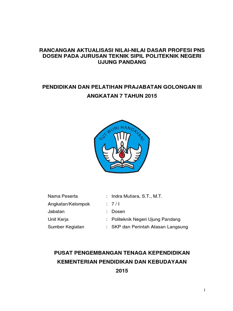 Rancangan aktualisasi nilai nilai dasar pns golongan iii. Panduan aktualisasi latsar cpns lipi 2019 2. Menyusun rancangan aktualisasi dalam merancang aktualisasi peserta dituntut untuk dapat. Penulis sadar bahwa rancangan laporan aktualisasi ini masih jauh dari kesempurnaan oleh karenanya penulis berharap masukan dari berbagai pihak membuat rancangan laporan menjadi lebih baik agar rancangan ini dapat dijadikan dasar dalam pelaksanaan dan pelaporan aktualisasi dan habituasi nilai nilai dasar asn serta memberikan manfaat yang sebesar besarnya bagi semua pihak yang membutuhkan. Contoh laporan aktualisasi nilai dasar cpns kemdikbud bpnb november 24 2015. Teman teman yang paling kubanggakan dan kusayangi rekan.
