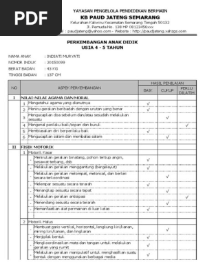 Contoh Raport Paud Tk Kb Tpa Otomatis Welcome Teknologi