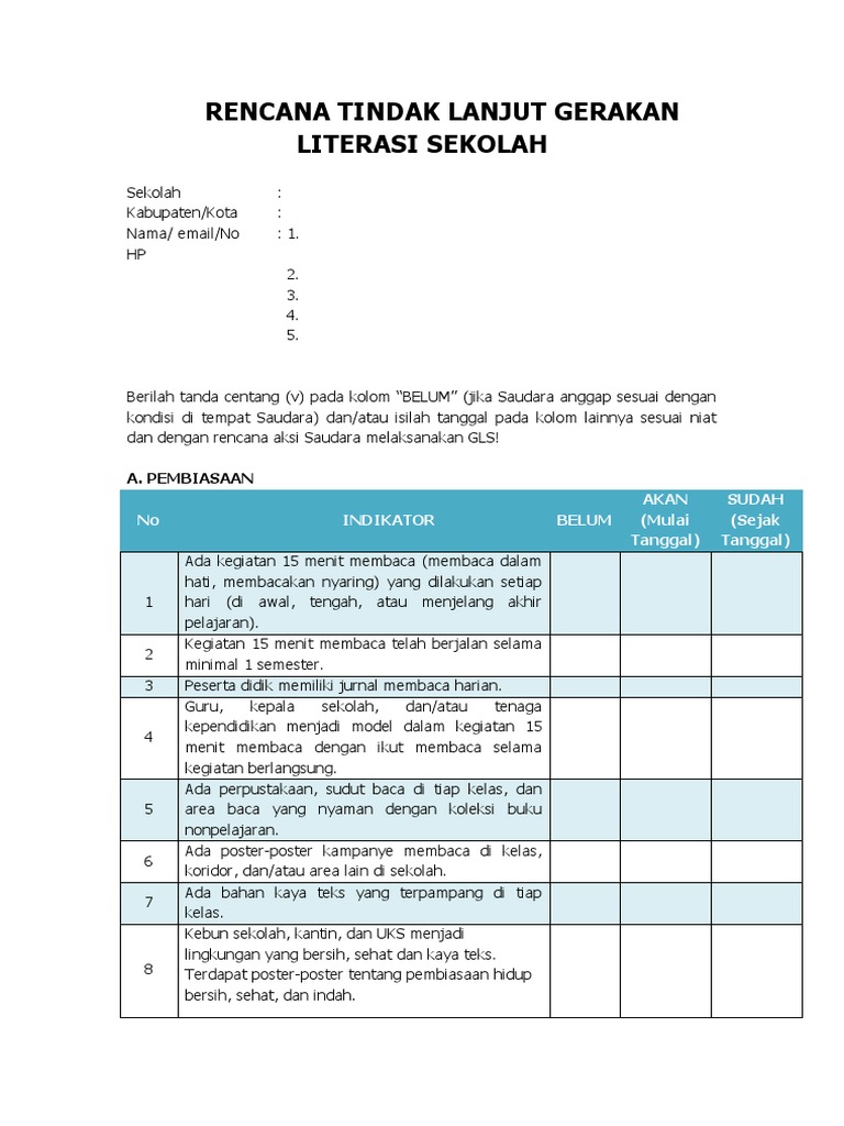 Contoh rencana dan laporan pelaksanaan kegiatan literasi sd. Anderson krathwol 2001. Manfaat dari rencana pelaksanaan literasi rpl diantaranya sebagai panduan bagi guru dalam memberikan kegiatan literasi pada siswa siswi sehingga lebih sistematis dan terencana untuk mencapai tujuan literasi dalam waktu yang terbatas. Berikut ini adalah contoh laporan program kegiatan literasi sekolahmadrasah laporan program kegiatan literasi sekolahmadrasah bisa didownload di bawah ini. Soal revisi sd smp sma. Rencana dan laporan pelaksanaan kegiatan literasi berikut ini adalah berkas berkas dan laporan ojl 2015 lengkap yang merupakan kumpulan file dari berbagi sumber 2015on the job learning tentang rencana dan laporan pelaksanaan kegiatan literasi yang bisa bapakibu gunakan dan diunduh secara gratis dengan menekan tombol download biru dibawah ini. Pendahuluan literasi tidak sekedar membaca dan menulis namun mencakup keterampilan berpikir menggunakan sumber sumber pengetahuan dalam bentuk cetak visual digital dan auditori.