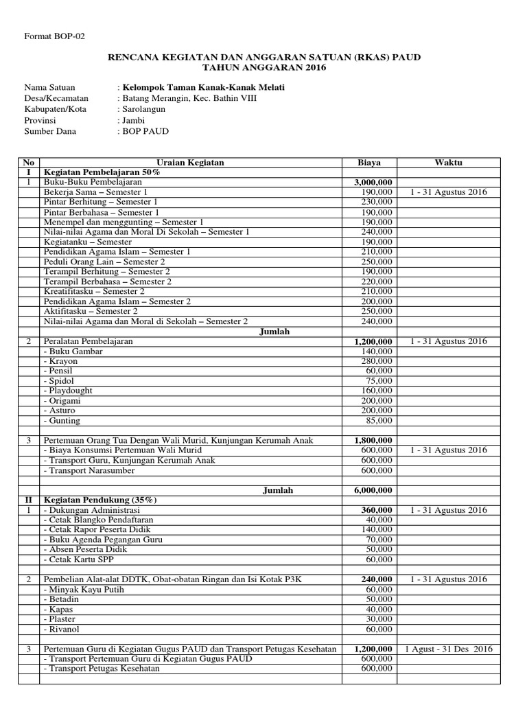 Panduan penyusunan rpp rencana pelaksanaan pembelajaran kurikulum 2013 smp. Contoh rkas bop paud terbaru. Rencana kerja dan anggaran sekolah adalah dokumen penting yang harus disusun oleh lembaga sebagai acuan setiap kegiatan lembaga dan juga sebagai syarat dalam pengajuan dana. Contoh sk bendahara bop paud terbaru. Senin 20 agustus 2018 tambah komentar edit. Kritik dan saran saya harapkan demi kemajuan blog ini kedepannya.