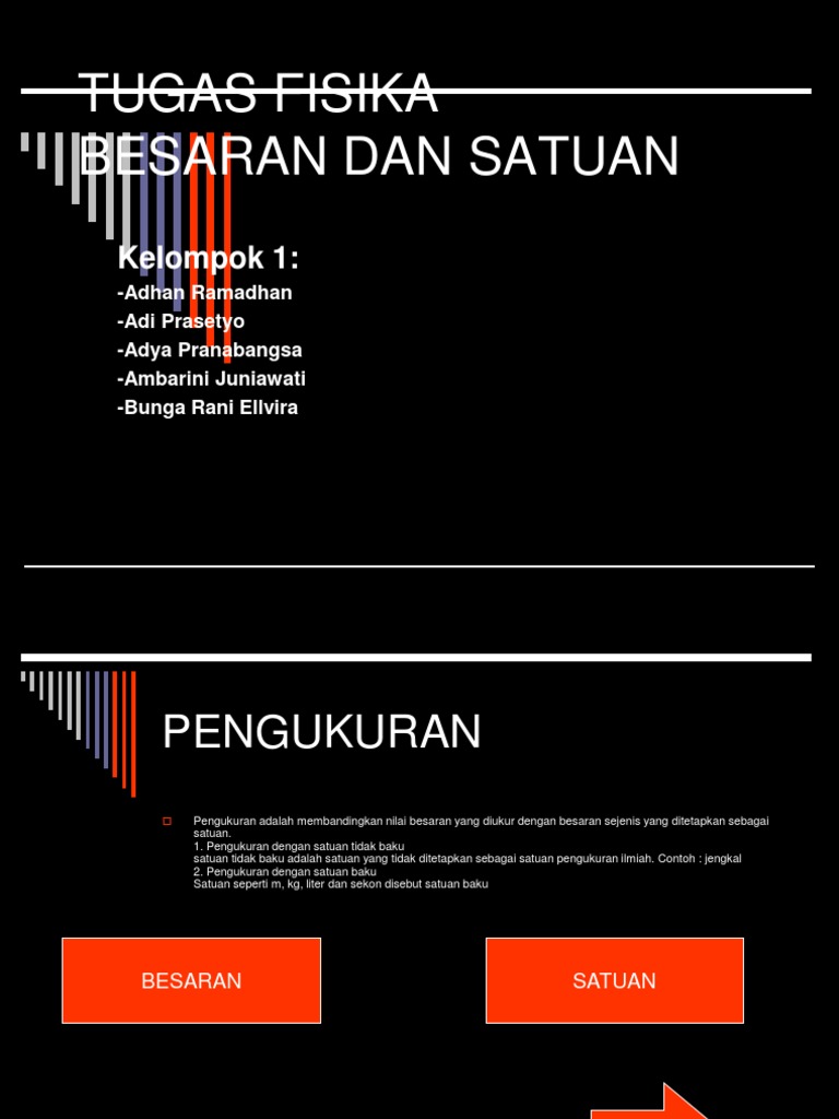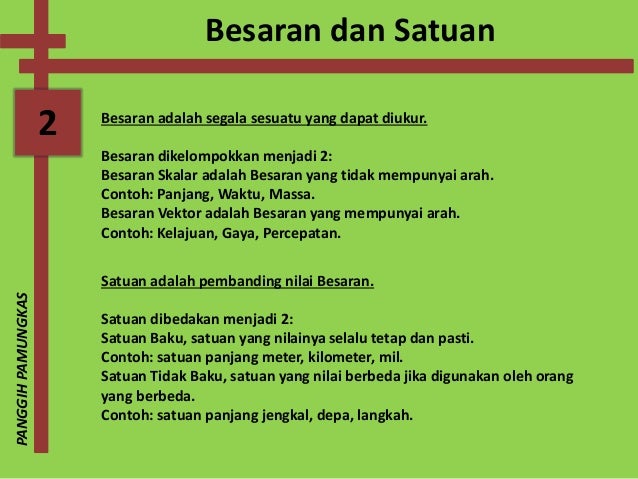 2 satuan baku yaitu meter kg dan sekon. Satuan tidak baku adalah satuan yang apabila digunakan oleh orang orang yang berbeda bisa menghasilkan hasil pengukuran yang berbeda. 2 satuan baku yaitu meter kg cm sekon dan lain lain. Jengkal tangan depa hasta dan feet. Mengukur panjang meja menggunakan kilan panjangjarak antara ujung ibu jari hingga jari kelingking. Hasil pengukuran orang dewasa akan berbeda jika dibandingkan dengan hasil pengukuran anak kecil.