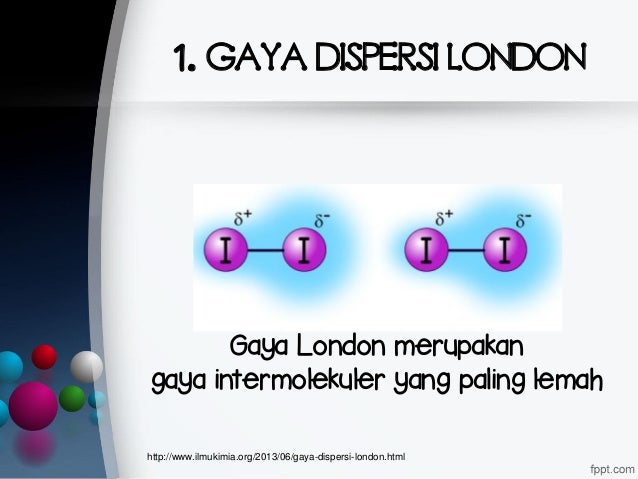 Kekuatannya 1 sampai 10 kjmol. Terjadinya dipol terimbas 2. Nama gaya ini diambil dari nama seorang ilmuwan yaitu. Sebagai contoh molekul air h 2 o yang bersifat polar dapat menginduksi molekul oksigen o 2 yang bersifat nonpolar. Titik didih senyawa sebanding sekaligus mencerminkan kekuatan gaya london. Teori mekanika kuantum gaya dispersi.