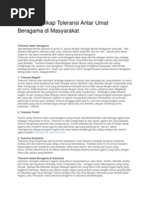 Contoh sikap toleransi antar umat beragama. Oleh sebab itu kerukunan antar umat beragama tidak mungkin bisa lahir dari sikap fanatisme buta serta sikap tidak peduli atas hak hak keberagaman dan perasaan orang lain. Toleransi ini tidak menghargai isi atau ajaran agama lain yang berbeda namun menghargai pemeluk atau penganutnya. Untuk menjaga persatuan antar umat beragama maka diperlukan sikap toleransidalam kamus besar bahasa indonesia sikap memiliki arti perbuatan dsb yang berdasarkan pada pendirian dan atau keyakinan sedangkan toleransi berasal dari bahasa latin yaitu tolerare artinya menahan diri bersikap sabarmembiarkan orang berpendapat lain dan berhati lapang terhadap orang orang yang memiliki pendapat. Sikap toleransi tak hanya di wujudkan dalam umat antar bergama melainkan juga umat se agama. Sikap saling tolong menolong antar sesama umat dan tidak mengenal agama suku ras ataupun budaya. Sikap toleransi ini sangat dibutuhkan karena dapat mempersatukan kerukunan antar umat beragama menimbulkan rasa persaudaraan dan memperkuat persatuan dalam bernegara.