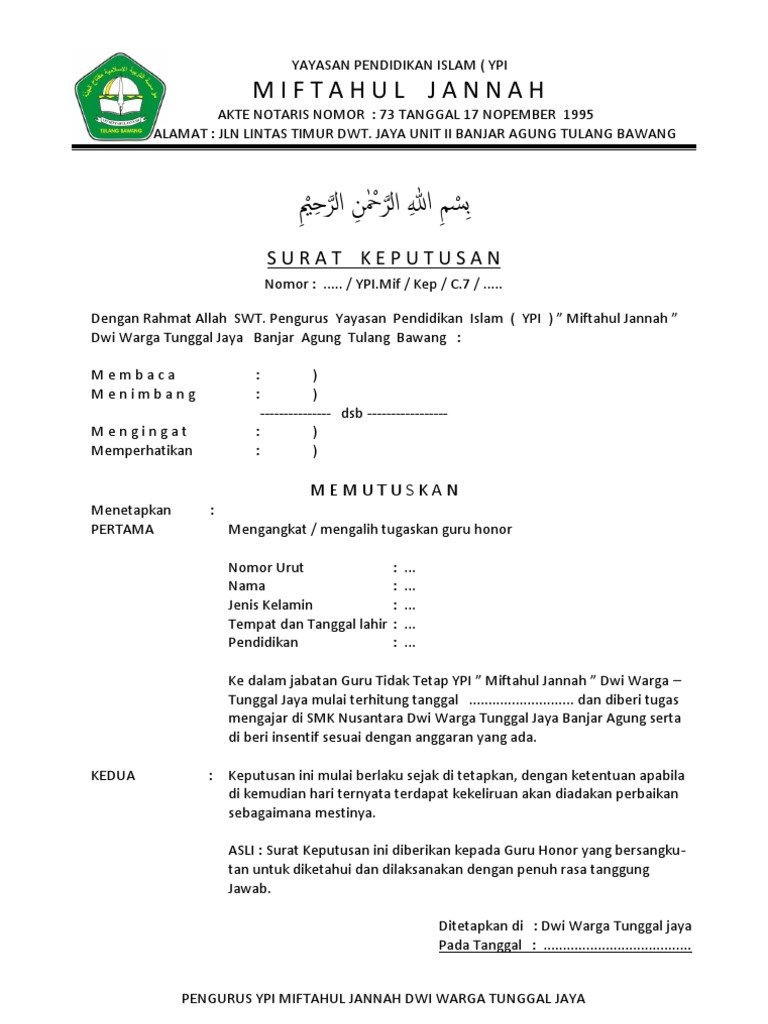 Contoh format sk penunjukkan guru honor tp. Contoh sk pengangkatan guru honordoc. Jadi anda tidak perlu khawatir mendownload dan menggunakan file file ini di perangkat komputer anda. Contoh sk guru honorer terbaru sd smp smasmk tahun 20192020 merupakan sebuah surat keputusan yang diberikan oleh kepala sekolah untuk memenuhi arsip administrasi atau sebagai bukti bagi gtt honor yang akan mengabdi di sekolah tersebutnah bagi anda yang ingin membuat sk namun tidak tahu caranya disini admin kan membagikan conoh sk honorergtt yang dapat anda unduh diakhir postingan ini. Bagi anda gtt ataupun kepala sekolah yang butuh contoh sk pengangkatan guru honorgtt terbaru di sini saya memberikan contohnya.