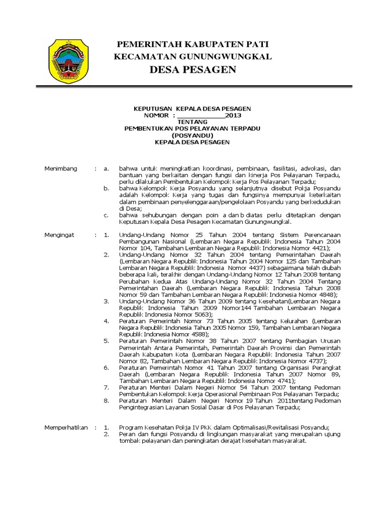 Contoh sk posyandu desa kangkung keputusan kepala desa kangkung. Friday march 9 2018 sk. Kader posyandu desa lurah. Keputusan kepala desa mataiwoi. Bahwa dalam penyelenggaraan program pos pelayanan terpadu posyandu dilaksanakan oleh kader posyandu di wilayah desa petir kecamatan petir kabupaten serang. Contoh format sk surat keputusan kepala desa kader posyandu desa lurah mild.
