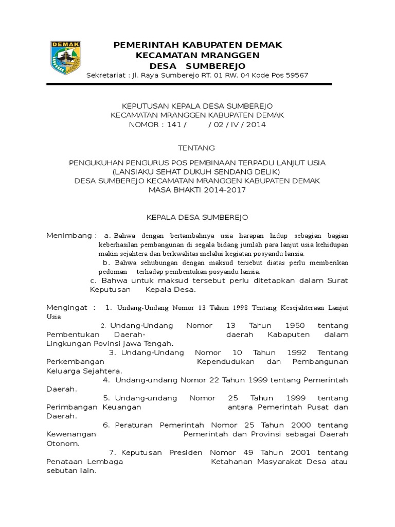 Pen unjukan petugas pengelola posyandu lansia gampong juli tambo tanjong. T e n t a n g. Asal usul data penerima bantuan pkh. Internet desa kominfo desa masuk target program internet gratis kominfo lagi hits berikut ini blog format administrasi desa akan merangkum kumpulan format format atau contoh contoh sk kades terbaru dan terlengkap beserta lampirannya dalam bentuk format doc word dan pdf. Sebelum membahas tentang contoh format terbaru sk pengangkatan kader posyandu desa terlebih dahulu perlu kita uraikan yang menjadi payung hukum atas surat keputusan sk kepala desa tentang pengangkatan atau penunjukan kader posyandu desa atau kader kesehatan desakelurahan. Berikut anakciremai berikan contoh sk kepala desa untuk pengangkatan kader posyandu.