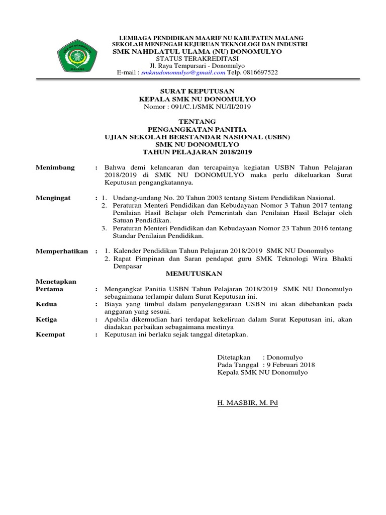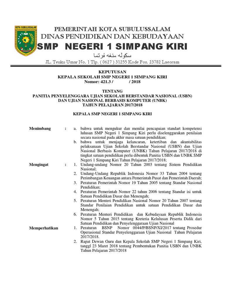 Contoh sk panitia ununbk smp sma 2020 sk ujian nasional berbasis komputer unbk merupakan surat keputusan yang cukup dibutuhkan oleh panitia penyelenggara usbn maupun ununbk merupakan suatu ujian untuk menentukan lulus atau tidaknya peserta didik sesudah mengikuti ujian yang diselenggarakan oleh dinas pendidikan ataupun oleh pemerintah pusat dan untuk itu dari pihak sekolah pastikan harus. Silahkan bagi panitia ujian nasional di sekolah yang membutuhkan untuk persiapan menghadapi unbk tahun 2018 bisa mendapat file secara lengkap melalui link dibawah ini.