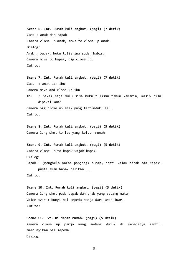 Contoh skenario film pendek jadi berdasarkan kamus besar bahasa indonesia yang dimaksud dengan skenario itu adalah rencana atau lakon dalam sebuah pementasan baik itu film ataupun drama. Pelepasan remah 1.