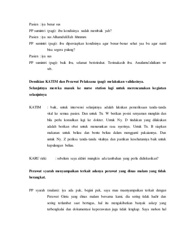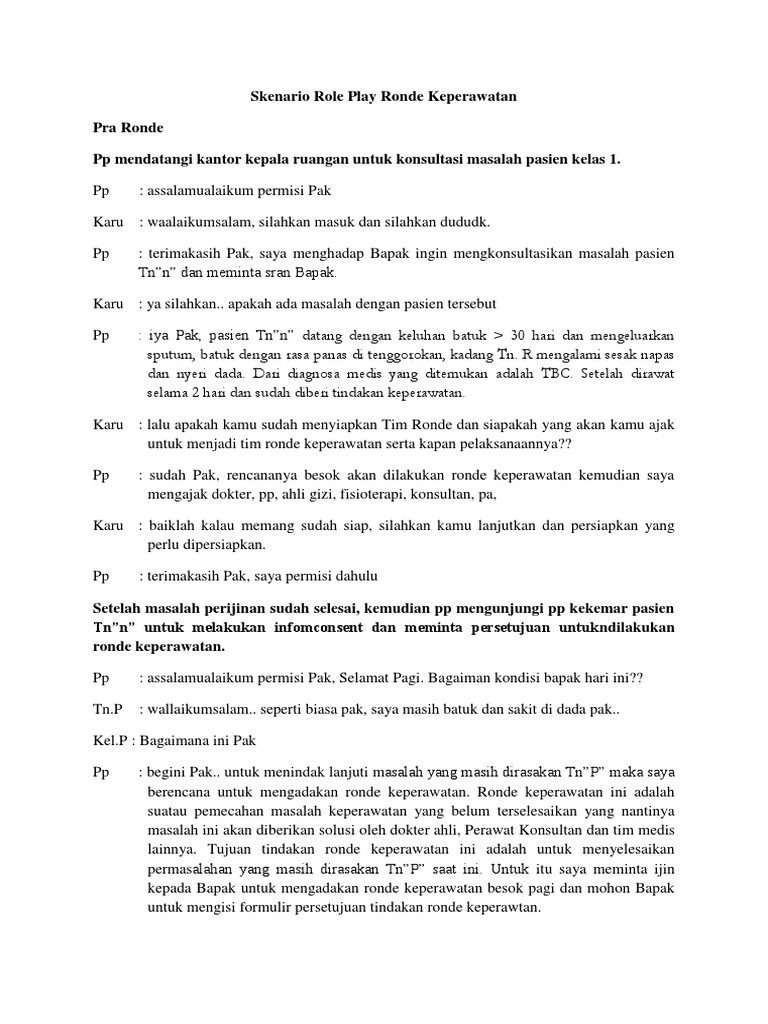 Ilmu keperawatan dasar 2 naskah roleplay komter pada dewasa dosen pembimbing. Dalam metode ini siswa diminta untuk bermain suatu drama secara spontan untuk memperagakan peran perannya dalam berinteraksi.