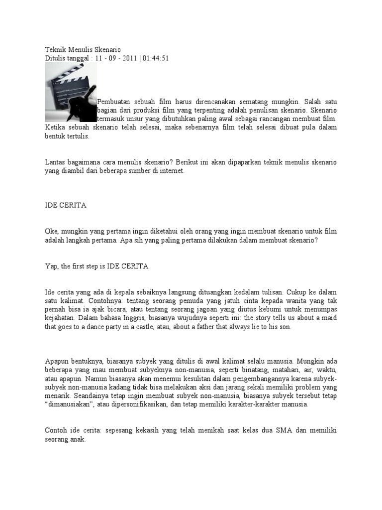 Silahkan untuk di download. Jika dilihat contoh skenario ini mempunyai editing yang keren banget. Contoh paper yang sudah jadi. Contoh skenario film pendek jadi berdasarkan kamus besar bahasa indonesia yang dimaksud dengan skenario itu adalah rencana atau lakon dalam sebuah pementasan baik itu film ataupun drama. By guru dadang posted on february 3 2020 february 3 2020. Lapangan parkir telah sepi.