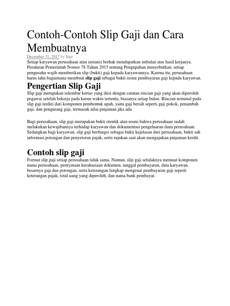 Contoh slip gaji karyawan resmi adalah bukti resmi pembayaran gajipenghasilan seorang karyawan. Slip gaji ini juga menerangkan berapa total take home pay yang diterima oleh karyawan. Kelengkapan slip gaji yang jelas dan baik dapat menimbulkan rasa kepercayaan para karyawan pegawai sebuah rasa dihormati dan merasa bahwa haknya sudah dipenuhi dengan baik. Contoh slip gaji karyawan swasta diatas dapat pula anda pakai buat slip gaji karyawan non swasta. Contoh slip gaji guru honorer adalah sebagai berikut. Slip gaji yang baik berisi rincian atau detail dari gaji karyawan tersebut.