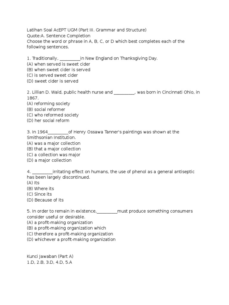 3 oktober 2012 1519 diperbarui. Inilah pembahasan selengkapnya mengenai contoh soal acept ugm 2016 pdf. 6 agustus 2015 0610 3476 0 0 mohon tunggu. More than a ticket. Kasihan para peserta. Sentence completion choose the word or phrase in a b c or d which best completes each of the following sentences.