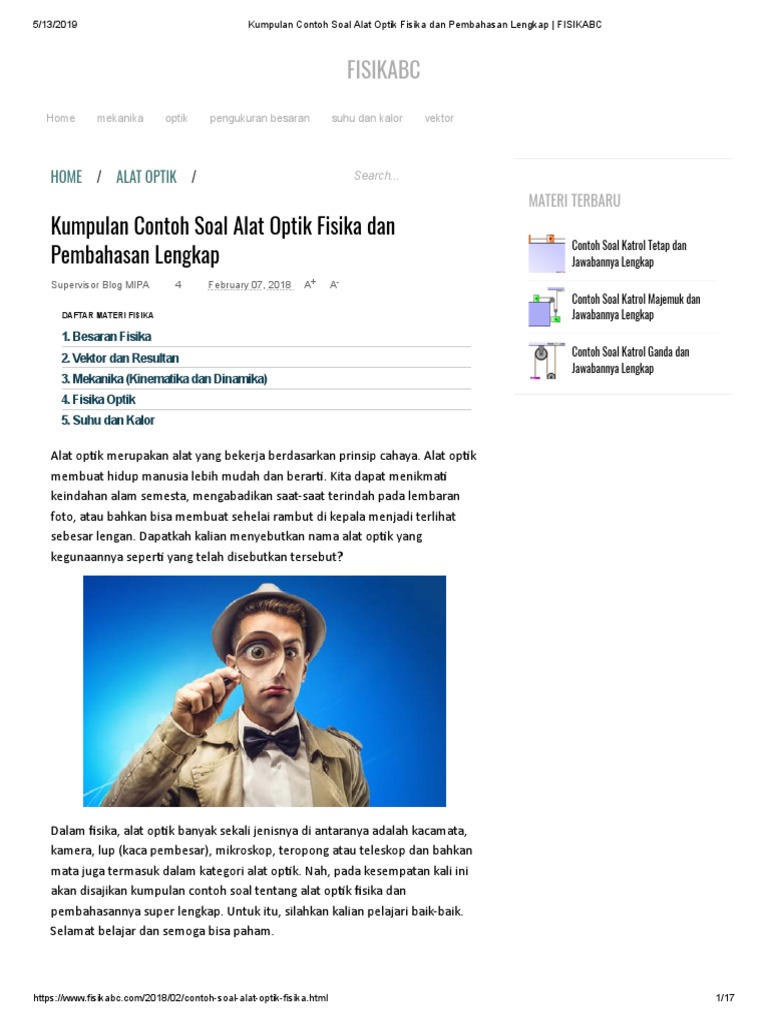 Ilmu Pengetahuan 2 Contoh Soal Fisika Tentang Alat Optik