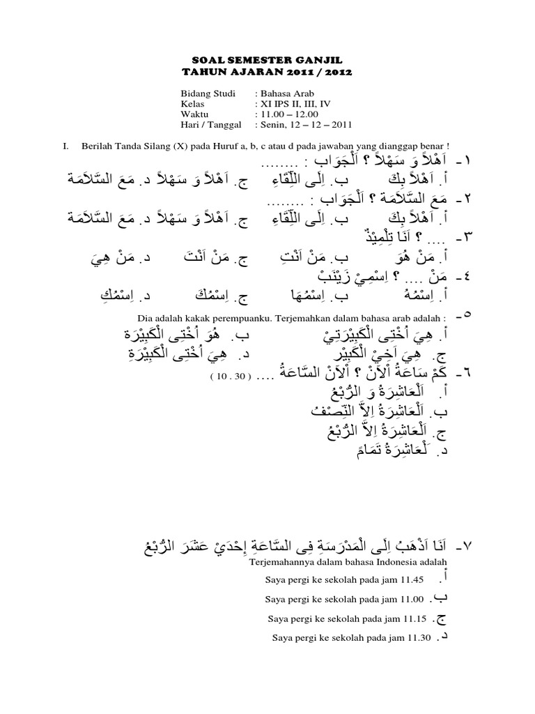 Ini Soal Uts Semester 1 Bahasa Arab Belajar Islam Dan