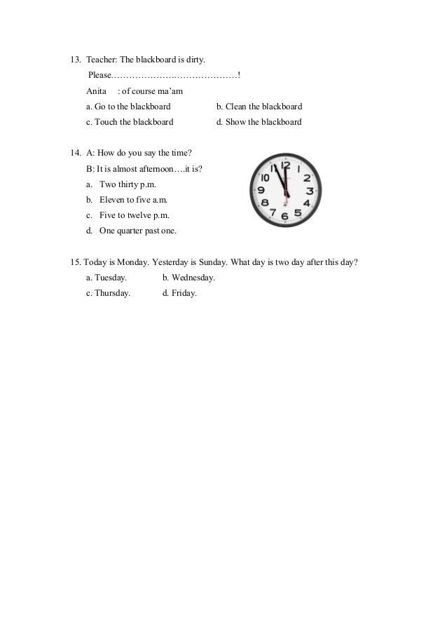Profil guru smpn 1 cipongkor semester genap 20142015. There is a garden in my school. Berikut ini adalah latihan soal uts bahasa inggris kelas 7 semester 1 kurikulum 2013 dan kunci jawabannya. Untuk yang mau mendownload silahkan scroll terus kebawah linknya ada di bawah yaaaa para jagoans. Pilihlah huruf a b c atau d sebagai jawaban yang paling benar. Demikian contoh soal uas bahassa inggris kelas 7 semoga dapat bermanffaat dan daat dijadikkan bahan belajar bahasa inggris sobat ibi semua.