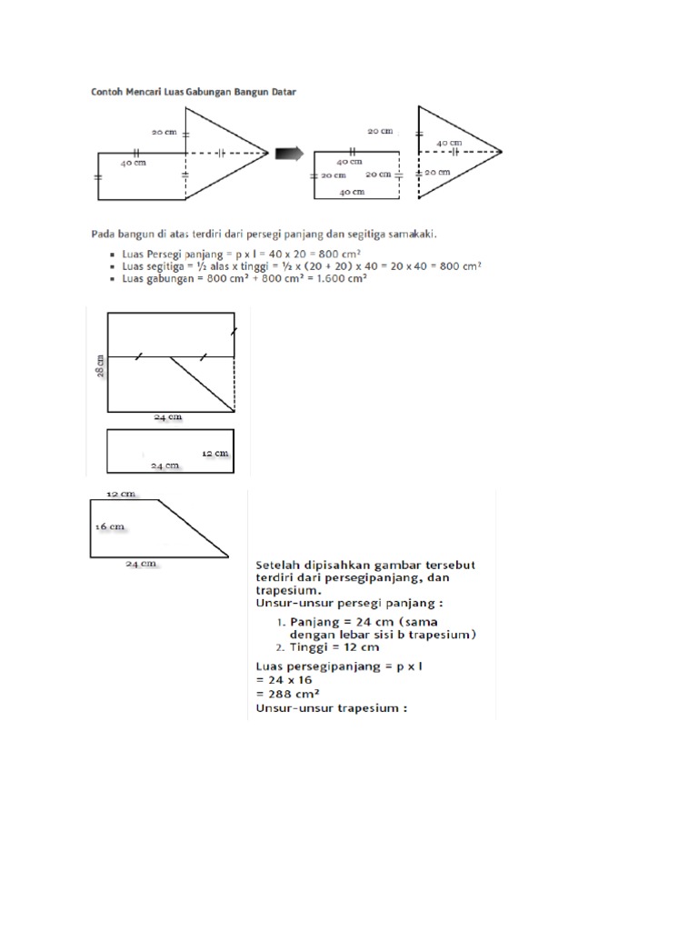 Bangun datar adalah kelompok bangun bangun dua dimensi seperti segitiga persegi lingkaran dan lain lain. Inilah pembahasan selengkapnya mengenai contoh soal bangun ruang gabungan dan jawabannya kelas 6. Seperti kisi kisi yang telah dikeluarkan bsnp materi segitiga dan segi empat akan kembali muncul di ujian nasional tahun 2020. Berikut adalah contoh soal dan pembahasan. Contoh soal luas dan keliling bangun datar gabungan dan jawabannya soal seni budaya december 10 1988 mencari keliling dan luas gabungan dari persegi panjang dan setengah. Rumuscoid setelah sebelumnya kita membahas tentang rumus keliling alas kubus kali ini kita akan membahas materi tentang rumus keliling bangun datar kita akan jabarkan secara detail dan lengkap dari pengertian persegi persegi panjang segitiga belah ketupat jajar genjang trapesium layang layang lingkaran rumus dan contoh soal dari bangun datar tersebut.