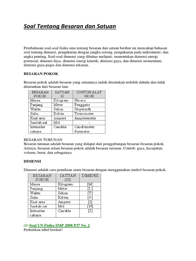 Pengertian satuan yaitu nilai pembanding pada proses pengukuran. Jumat 27 juli 2012. Contoh soal dimensi besaran. Rangkuman besaran satuan kesalahan pengukuran hanung prasetya utomo 17 september 2012. Belajar fisika bab pertama yang kamu pelajari adalah bab besaran dan satuan. Suhu volume massa jenis dan kuat arus b.