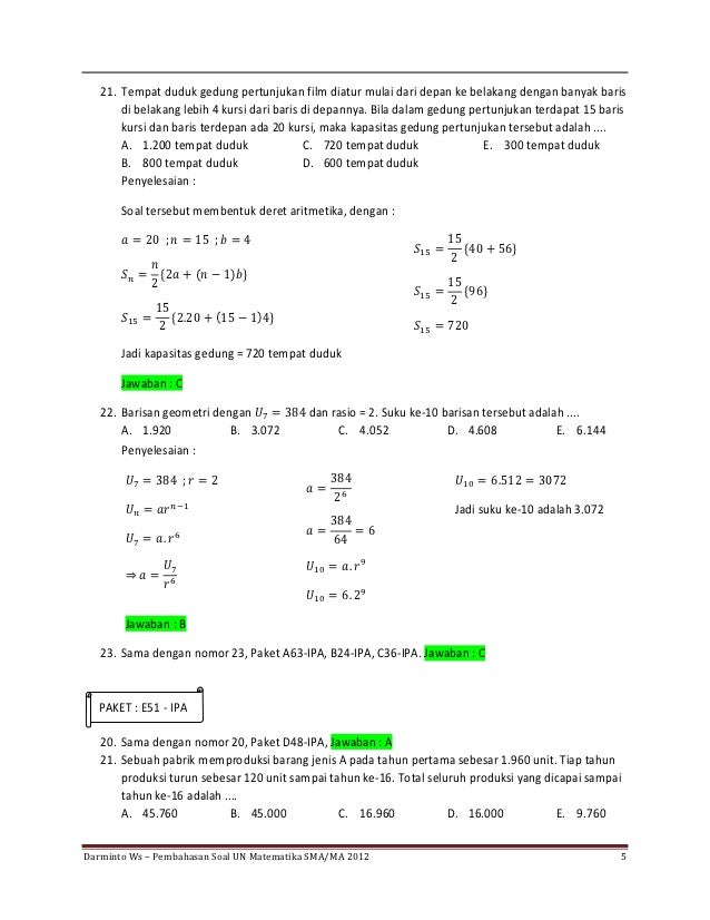 Pembahasan Soal Un 2012 Barisan Dan Deret