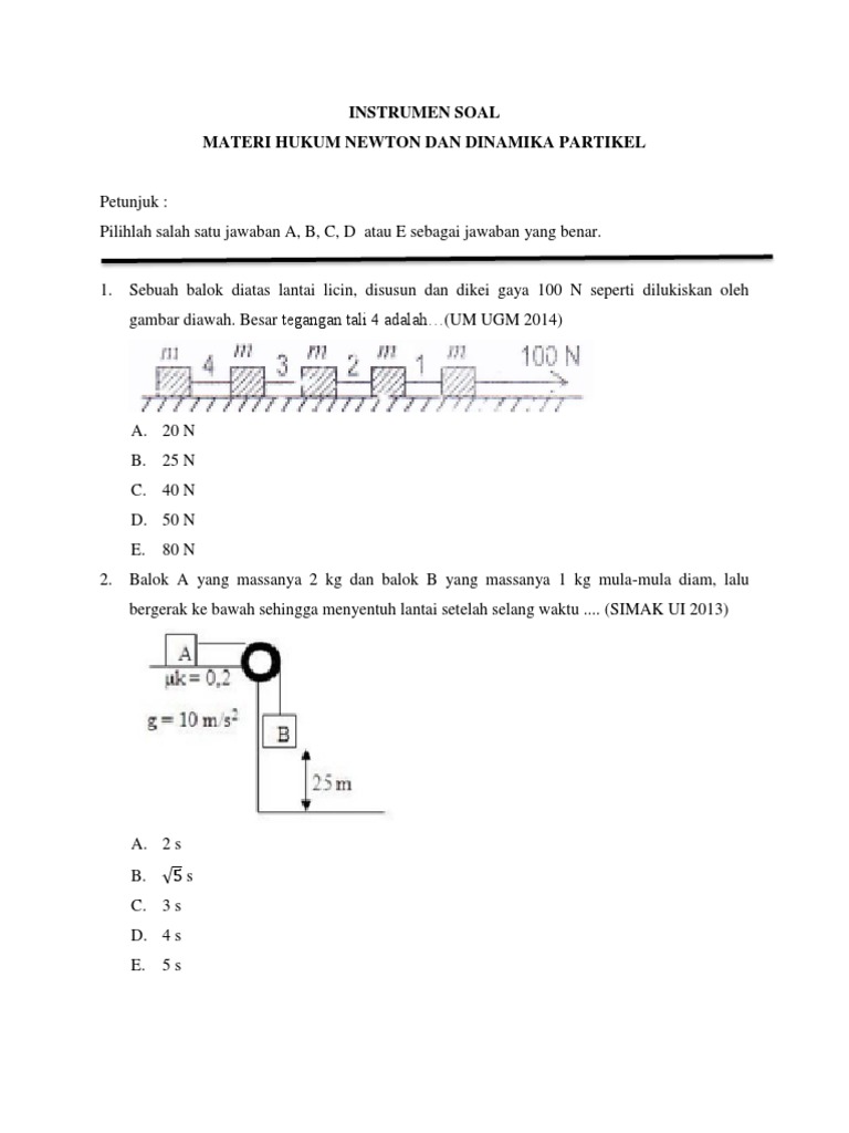 Informasi berikut digunakan untuk menjawab soal no 1 dan 2. Contoh soal dinamika partikel 1.