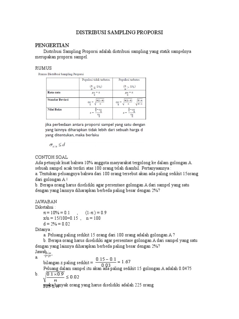 Contoh soal abc company memproduksi remote control dengan menggunakan dua baterai. Distribusi sampling soal jawab. σ 12 σ 22 µ x1 x 2 µ1 µ 2 dan σ x1 x2 n1 n2 shg. Distribusi sampling rata rata dan proporsi. Distribusi sampling rata rata dan proporsi 1. Contoh soal distribusi normal iii 3.