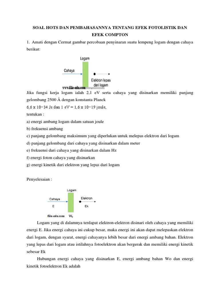 Contoh kartu soal kisi soal hal 2. Jika pendapat ini benar maka berdasarkan peristiwa efek fotolistrik yang dikemukakan oleh einstein arthur holy compton pada tahun 1923 telah mengamati gejala gejala tumbukan antara foton yang berasal dari sinar x dengan elektron. Fakta dan konsep dalam pembelajaran fisika. Berikut ini tim kimia space telah merangkum contoh soal efek compton essay dan penyelesaiannya untuk siswa sma kelas 12 dari berbagai penerbit buku yang berjumlah 10 butir agar dapat siswa pelajari sehingga paham hitungan soal terkait sub materi dari teori relativitas.