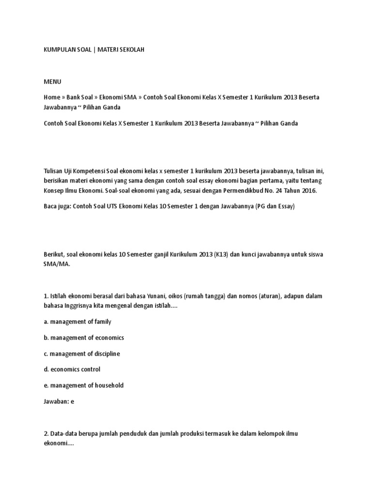 Kumpulan soal beserta jawaban ekonomi kelas xi semester 2. Contoh soal ekonomi kelas x semester ganjil beserta jawabannya lengkap.