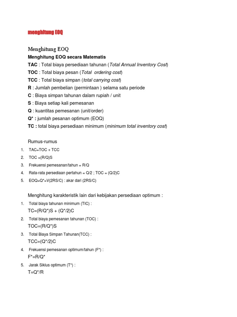 Pada kurikulum ktsp materi dengan porsi terbesar ada pada teks naratifsementara pada kurikulum 2013 ini materi song mendapatkan jatah alokasi waktu terbanyak. Begitulah yang dapat admin bagikan terkait contoh soal laporan arus kas metode tidak langsung dan jawabannya. Rumus eoq economic order quantity cara menghitung contoh soal. By azzahra rahmah posted on january 9 2020. Rumus eoq economic order quantity cara menghitung contoh soal by azzahra rahmah posted on january 9 2020 rumuscoid baiklah kali ini kita akan membahas materi yang sangat menarik yaitu tentang rumus eoq economic order quantity kami akan jabarkan secara detail dan lengkap mulai dari pengertian rumus cara menghitung contoh soal eoq beserta pembahasannya. Contoh soal dan pembahasannya perusahaan dana pada tahun 2014 merencanakan produksi sebesar 18000 unit dengan harga rp5000 per unit.