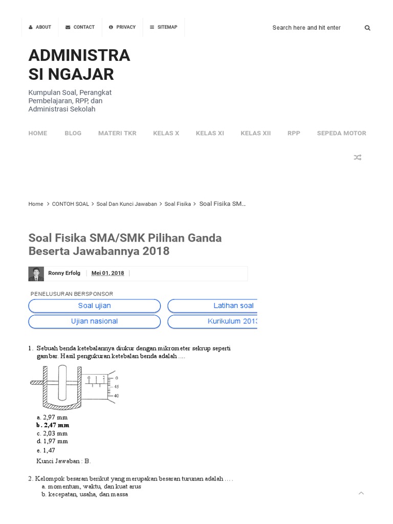 Contoh soal pilihan ganda. Jangan sia siakan bimbel tersebut seluruh kisi kisi dan pembahasan materi un pasti akan dijelaskan oleh gurumu dengan jelas. Jumlah berikut termasuk jumlah nominal adalah a. Fisika merupakan salah satu ilmu pengetahuan alam dasar yang banyak digunakan sebagai dasar ilmu ilmu yang lain. Ukuran dibagi menjadi dua kelompok yaitu a. Contoh soal terdiri dari soal tentang satuan dimensi besaran pokok dan besaran turunan.