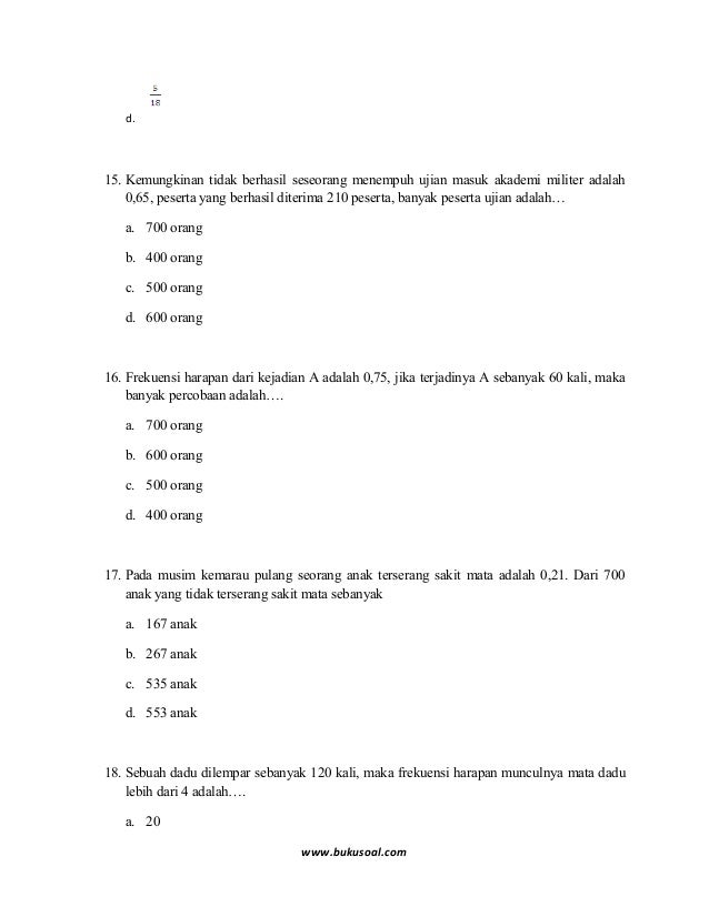 Soal revisi sd smp sma. Contoh soal frekuensi harapan suatu kejadian.
