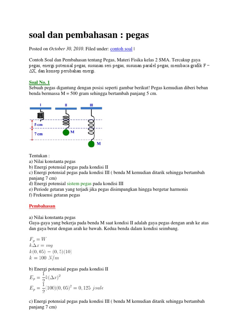 Maka berapa energi yang digunakan. Contoh soal gaya pegas di sma kelas 2 nanti guru akan memberikan materi seputar gaya pegas.