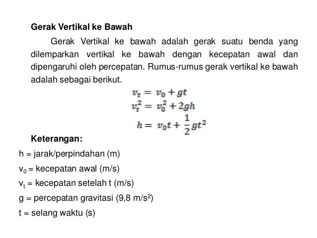 Contoh soal gerak vertikal ke atas dan pembahasan. Lintasannya berupa garis lurus ke atas. Rumus gerak vertikal ke atas adalah sebagai berikut. Demikianlah artikel tentang definisi ciri ciri rumus dan grafik pada gerak vertikal ke atas dan gerak vertikal ke bawah gerak jatuh bebas beserta contoh soal dan penuyelesaiannya. Sebuah bola dilemparkan vertikal ke atas dengan kecepatan awal 20 ms. Semoga dapat bermanfaat untuk anda terimakasih atas kunjungannya dan sampai jumpa di artikel berikutnya.