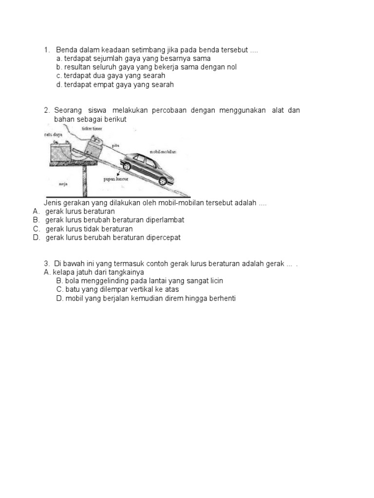 Contoh soal gerak lurus ini terdiri dari 5 soal pilihan ganda dan 5 soal essay. Pengertian gerak lurus berubah beraturan adalah gerak benda dengan lintasan garis lurus dan memiliki kecepatan setiap saat berubah dengan teratur. Pada glbb terdapat glbb diperlambat dan dipercepat. Gerak lurus berubah beraturandalam gerak lurus berubah beraturan ada beberapa macamnya yaitu. Sebelum mempelajari soal soal latihan gerak lurus berubah beraturan ini diharapkan terlebih dahulu untuk membaca dan memahami materi tentang gerak lurus berubah beraturandengan memahami konsep dasar dari gerak lurus berubah beraturan ini akan memudahkan kia dalam mempelajari penyelesaian soal soal glbb berikut. Sebuah kelapa itu jatuh bebas dari pohon yang tingginya itu 10 meter.