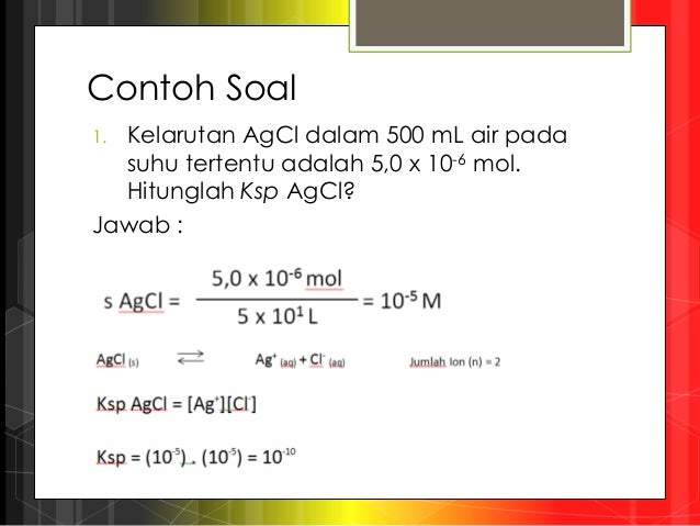 Hubungan kelarutan dengan hasil kali kelarutan dan contoh soal by mas min posted on april 6 2016 december 22. Contoh soal ksp hasil kali kelarutan dan jawaban beserta pembahasan pilihan ganda ksp hasil kali kelarutan yaitu hasil kali konsentrasi ion ion dari larutan jenuh garam yang sukar larut dalam air setelah masing masing konsentrasi dipangkatkan dengan koefisien menurut persamaan ionisasinya. Hitunglah kelarutan cuoh 2 dalam satuan gl jika diketahui k sp cuoh 2 22 10 20. 31 40 soal latihan hasil kali kelarutan ksp dan pembahasannya. Soal dan pembahasan kelarutan dan hasil kali kelarutan kelarutan ag3po4 dalam air adalah a molliter.
