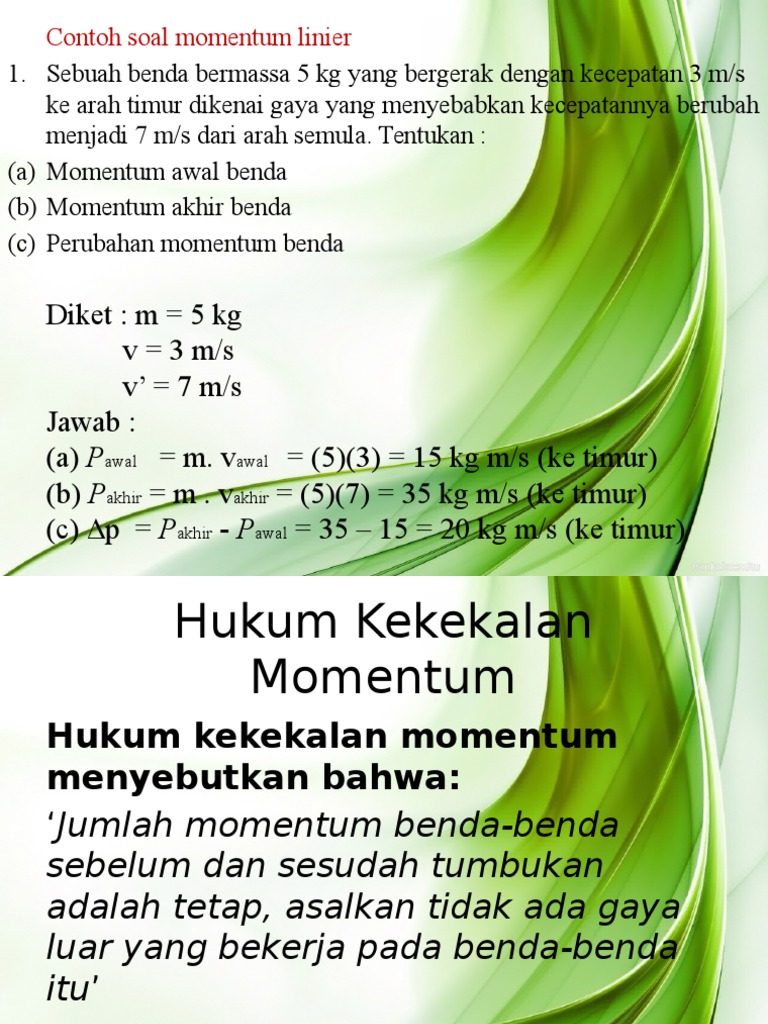 Pedoman lengkap belajar hukum kekekalan momentum mulai dari pengertian rumus bunyi tumbukan dan contoh soal latihan beserta pembahasan. Berikut ini beberapa contoh soal mengenai impuls momentum dan tumbukan beserta pembahasannya.