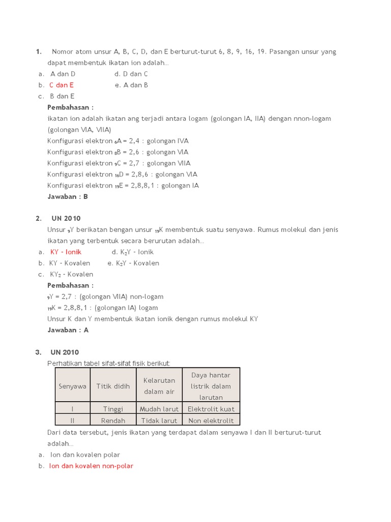 Contoh soal ikatan kimia. Pasangan unsur yang da. Sebelumnya rangkuman contoh soal pembahasan vektor. Home uncategories ikatan kimia. Perhatikan keterangan di bawah. Sangat bermanfaat baik untuk tingkat slta apalagi untuk tingkat perguruan tinggi yang berhubungan dengan ilmu kimia khususnya tentang ikatan kimiathanks. 19 r dan 53 e c.