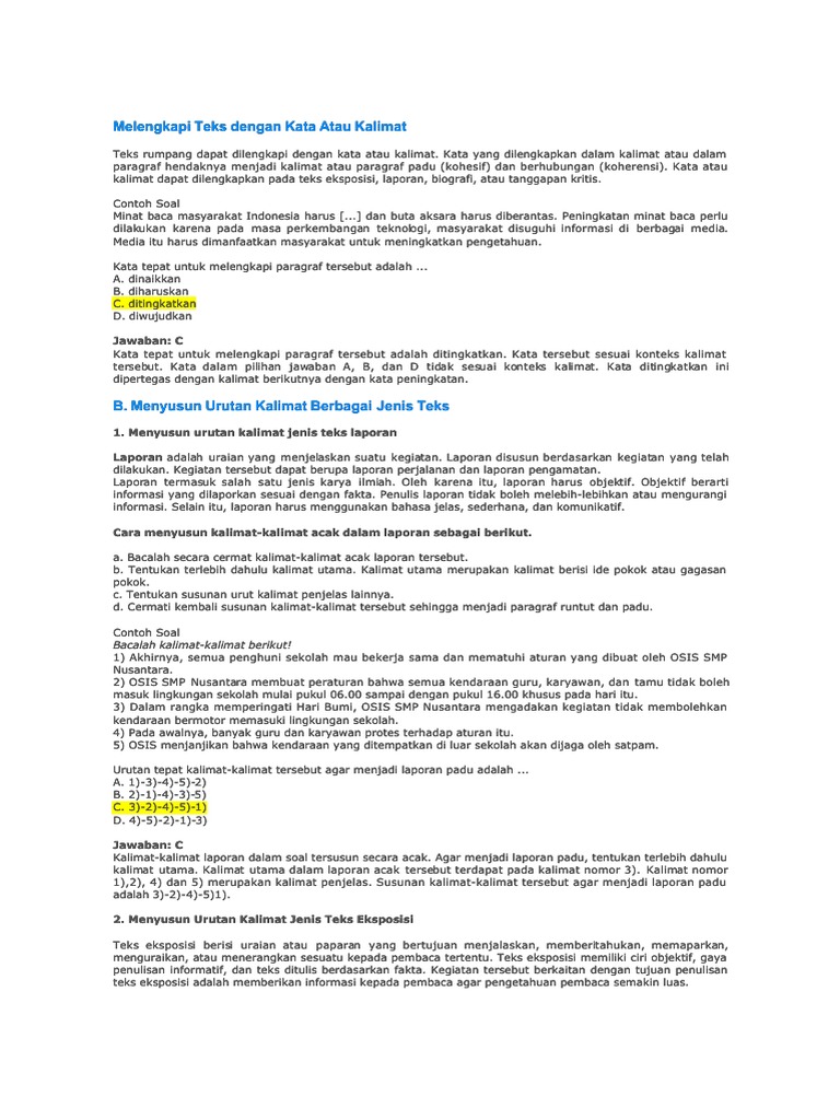 Contoh Soal Un Bahasa Indonesia Smp Pk1 Dan Pembahasannya