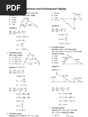 Contoh soal kesebangunan dan kekongruenan beserta jawabannya. Soal un matematika smpmts tahun 2019.