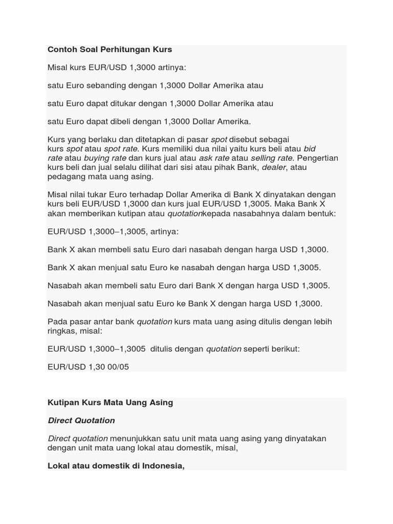 Artinya digunakan kurs beli. Kanada dollar 1010480. Australia dollar 1005111 994887. Contoh soal transaksi kurs jual dan kurs beli sumber. Contoh soal pertukaran kurs mata uang asing nama. Setelah sebulan di london pak ujang kembali ke indonesia.